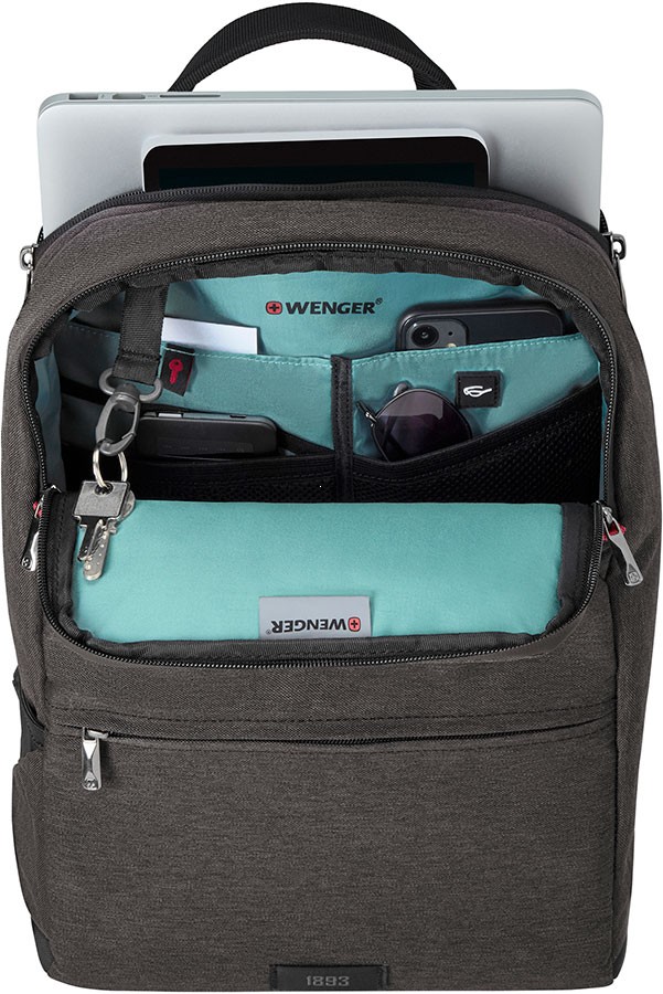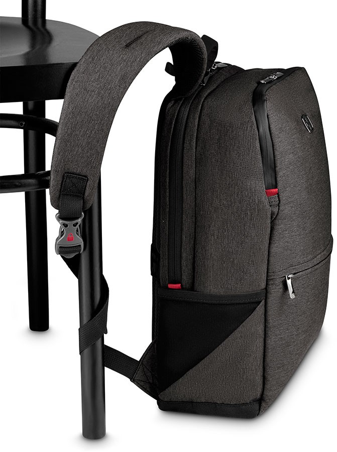 Plecak biznesowy i miejski renomowanej szwajcarskiej marki Wenger model MX Reload to funkcjonalne rozwiązanie przeznaczone do przenoszenia laptopa do 14 cali oraz tabletu 10 cali, wykonany z wysokiej jakości poliestru gwarantuje trwałość oraz estetyczny wygląd, świetnie sprawdza się w codziennym użytkowaniu zarówno w pracy, jak i w szkole czy na uczelni, będąc propozycją dla wymagających użytkowników ceniących wysoką jakość i praktyczność; plecak posiada dwie komory – tylną przeznaczoną na laptop i tablet oraz przednią pełniącą funkcję komory głównej z rozbudowanym panelem organizacyjnym, w tylnej części znajduje się wyściełana pianką o dużej gęstości kieszeń na laptopa 14” i tablet do 10”, natomiast komora główna oferuje dodatkową kieszeń z licznymi przegródkami na akcesoria takie jak wizytówki, telefon, okulary, kable, powerbank czy klucze z karabińczykiem, plecak można zamocować na stelażu walizki, posiada miękkie i regulowane szelki zwiększające komfort noszenia oraz ergonomiczny panel tylny z kanałami wentylacyjnymi wykonany z oddychającego materiału, z przodu znajduje się płaska kieszeń szybkiego dostępu na najpotrzebniejsze rzeczy, z boku umieszczono kieszeń z siatki na napój lub parasol, całość uzupełnia wzmocniona rączka do przenoszenia w dłoni, laminowane zamki podnoszące odporność na wilgoć, specjalne ramiączko umożliwiające przypięcie plecaka do krzesła lub stałego elementu w celu zabezpieczenia przed kradzieżą oraz stabilizująca podstawa CaseBase utrzymująca plecak w pionie.